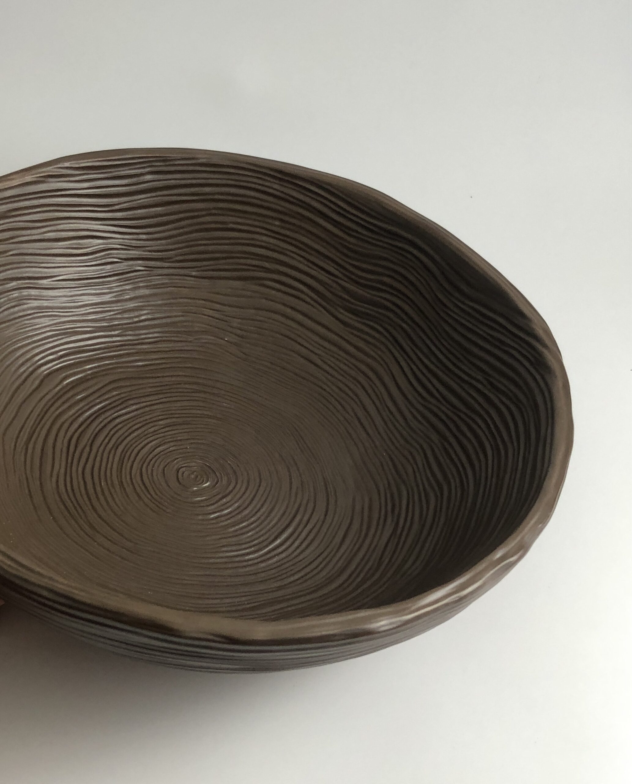 Grande coupe en terre sigillée noire de 28 cm, façonnée et décorée à la main.